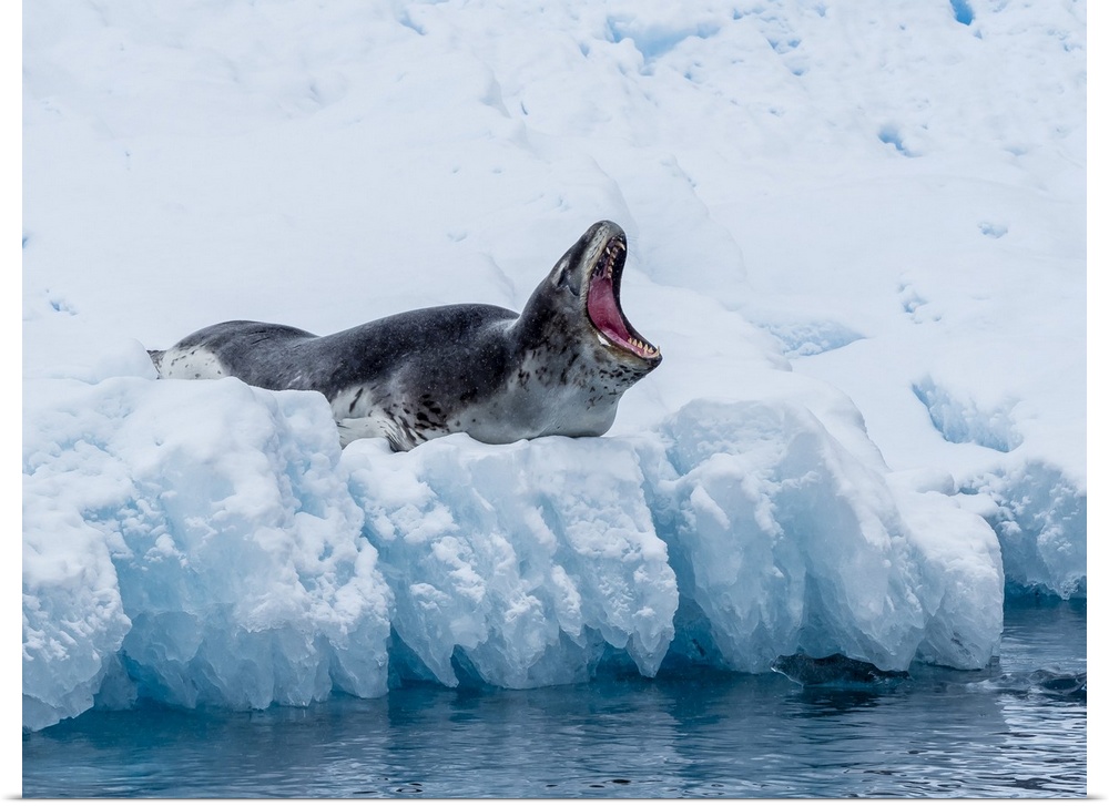 <p>An adult leopard seal (Hydrurga leptonyx), hauled out on ice in Cierva Cove, Antarctica, Polar Regions</p>