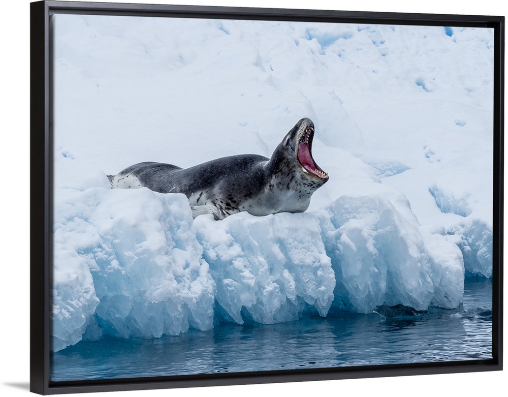 <p>An adult leopard seal (Hydrurga leptonyx), hauled out on ice in Cierva Cove, Antarctica, Polar Regions</p>