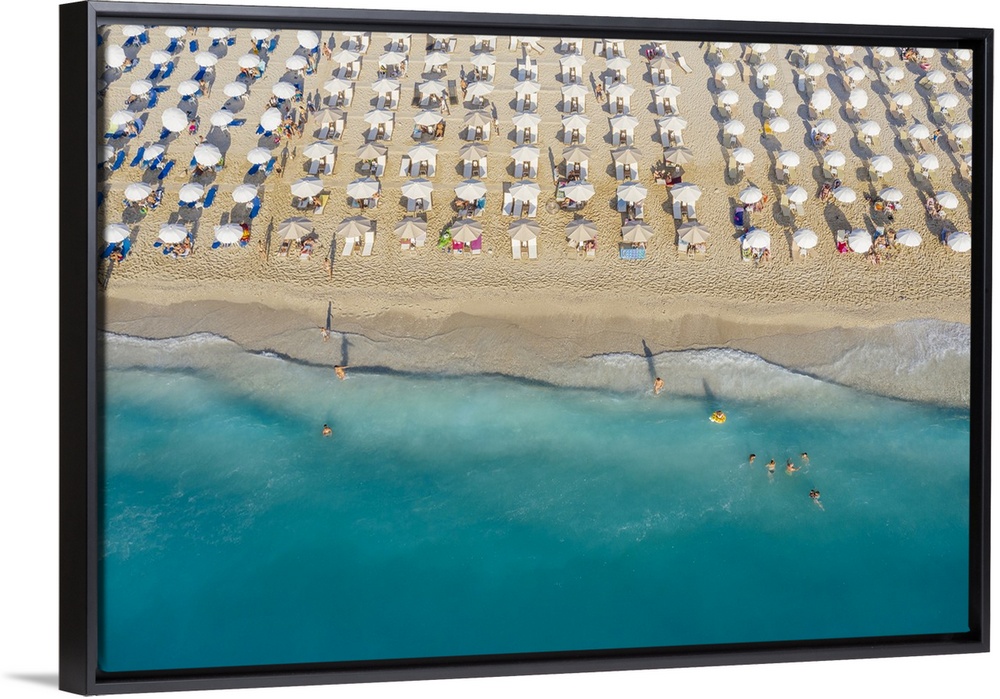 <p>An aerial view of Kathisma beach in Lefkada with people enjoying the deep blue waters.</p>