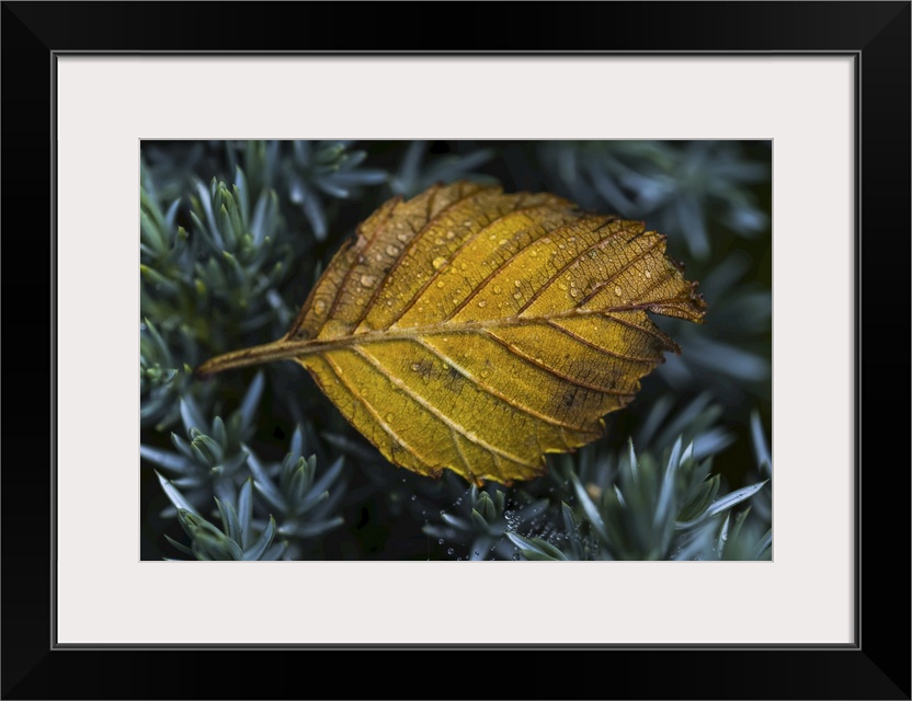<p>An alder leaf fallen into a flower garden, Astoria, Oregon, united states of America.</p>