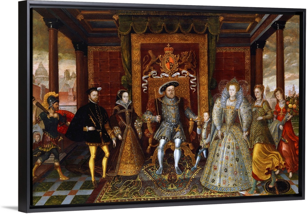 <p>Unknown, An Allegory of the Tudor Succession: The Family of Henry VIII, c. 1590, oil on panel, 114.3 x 182.2 cm (45 x 71.7 in), Yale Center for British Art, New Haven, Connecticut.</p>
