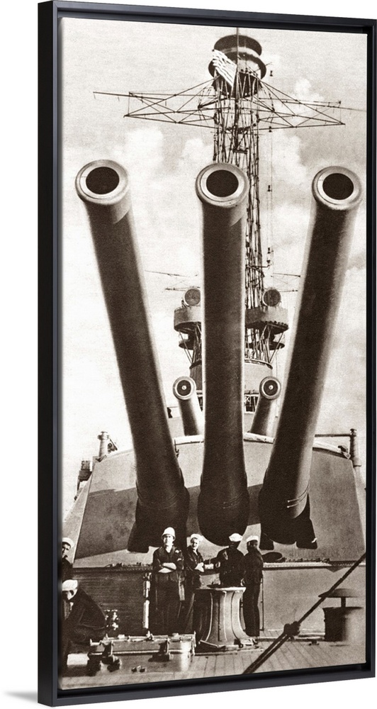 <p>An American dreadnought battleship equipped with five fourteen-inch guns, during World War I. Photograph, c1917.</p>