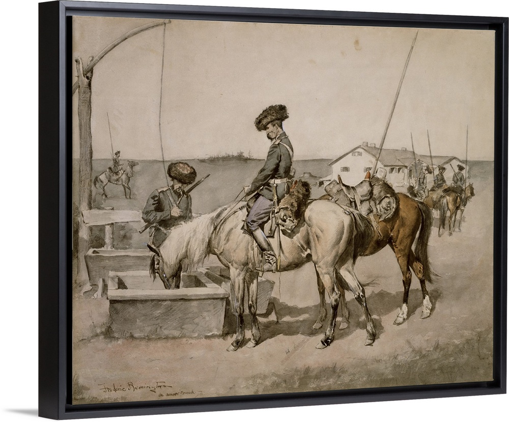 <p>Though he was born in New York, American artist Frederic Remington recreated scenes from the old American West. His canvas paintings and sketches were considered largely observational at the time and are now yielded as piece of American history.</p>
