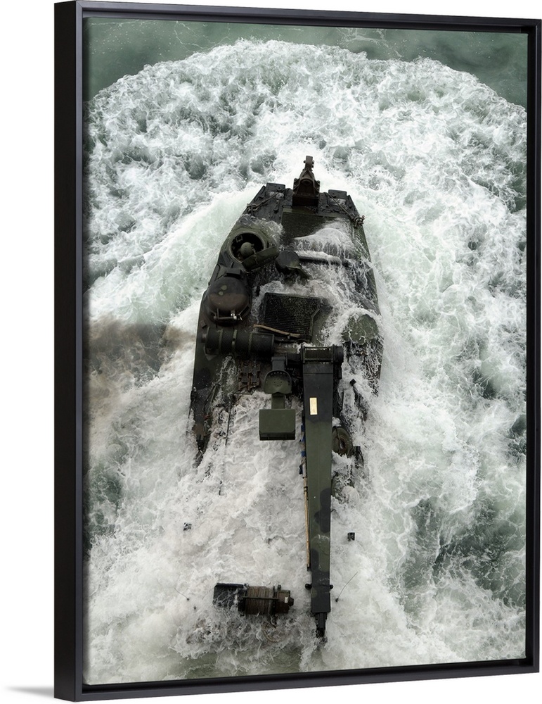 <p>An amphibious assault vehicle leaves the well deck of USS Iwo Jima.</p>