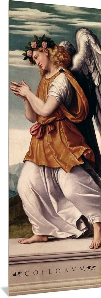 <p>BAL72614 An Angel (panel) by Moroni, Giovanni Battista (c.1525-78) (attr. to); oil on panel; 151.1x53.3 cm; National Gallery, London, UK; Italian, out of copyright</p>