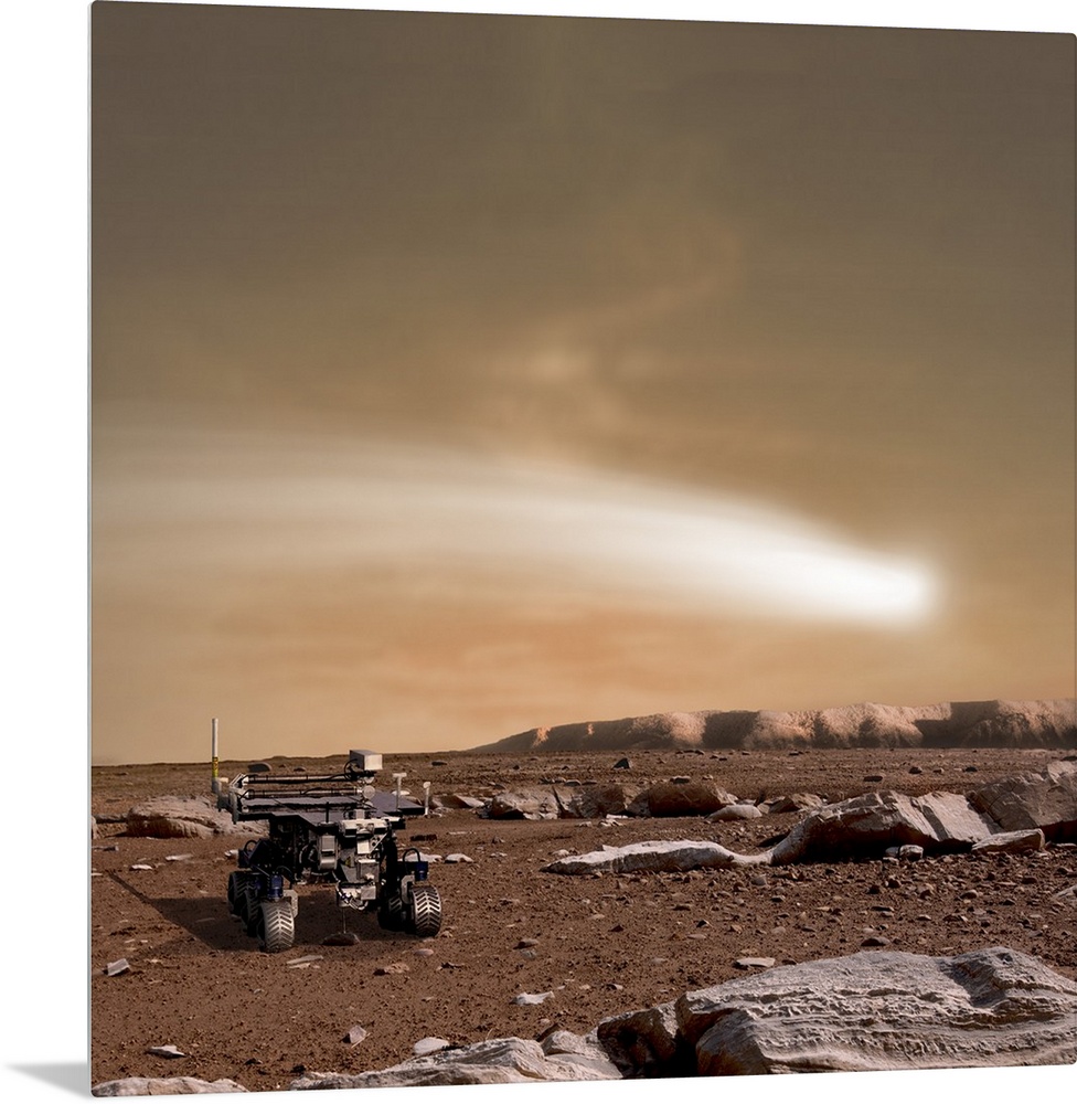<p>An artist's depiction of the close pass of comet C/2013 A1 over Mars.</p>