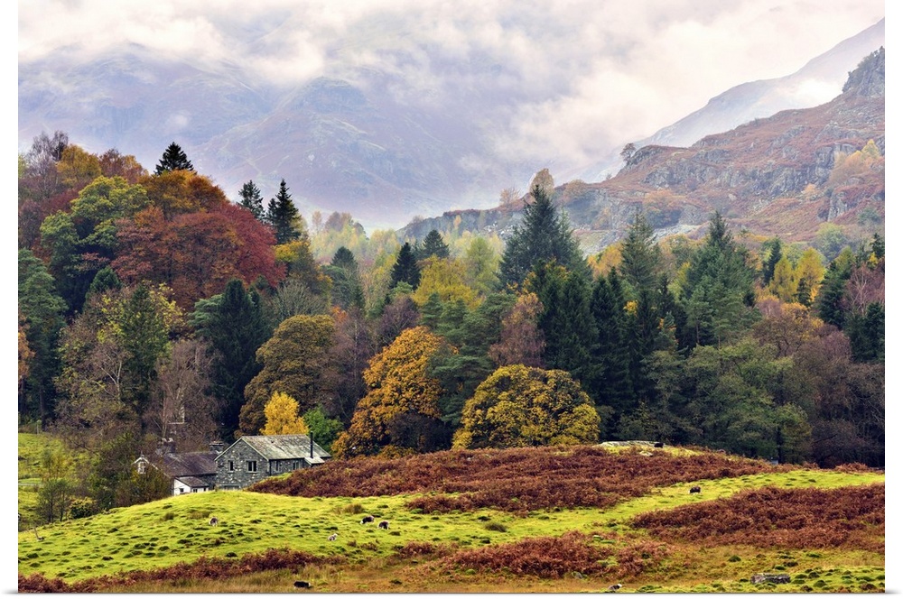<p>An autumn view of the scenic Langdale Valley, Lake District National Park, Cumbria, England, United Kingdom, Europe</p>