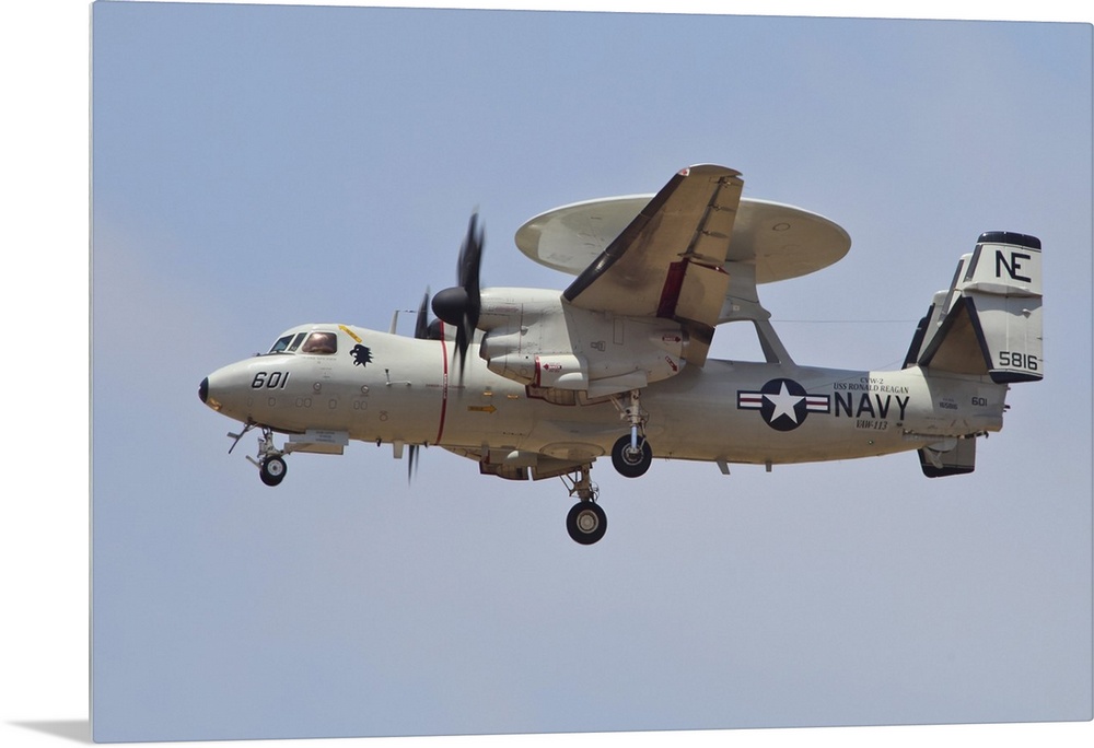 <p>An E-2D Advanced Hawkeye of the U.S. Navy in flight over the Pacific coast of California.</p>