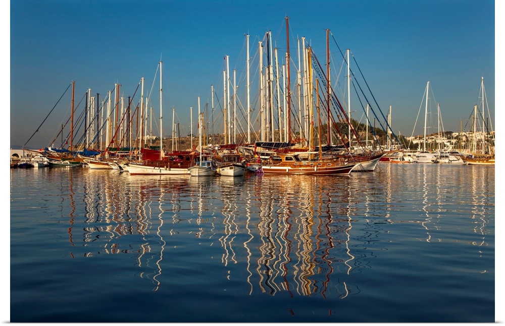 <p>An early morning view of boats in the harbour, at Bodrum, Turkey., The harbour at Bodrum, on the coast of the Aegean Sea, western Anatolia, Turkey.</p>