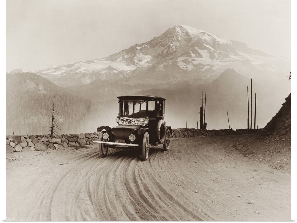 <p>An electric car produced for on a promotional tour, with Mt. Rainier in the distance.</p>