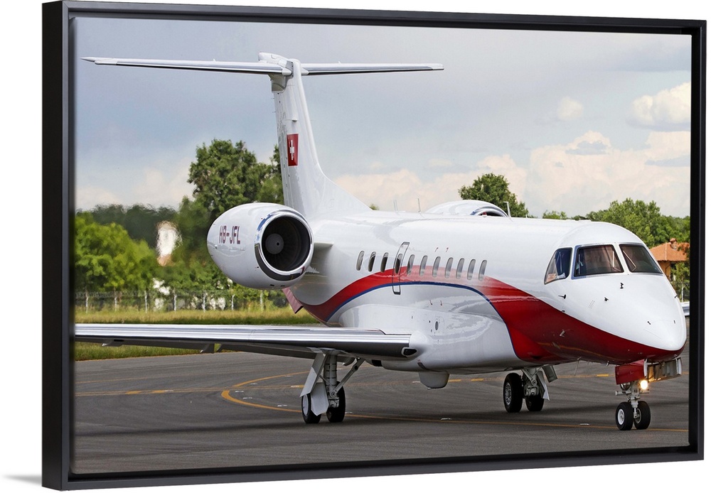 <p>An Embraer Legacy 600 private jet taxiing at Turin Airport, Italy.</p>