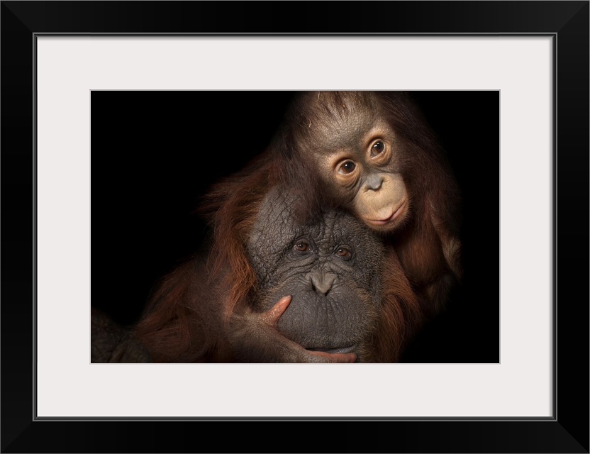 <p>An endangered baby Bornean orangutan (Pongo pygmaeus) named Aurora, with her adoptive mother, Cheyenne, a Bornean/Sumatran cross (Pongo pygmaeus x abelii) at the Houston Zoo.</p>