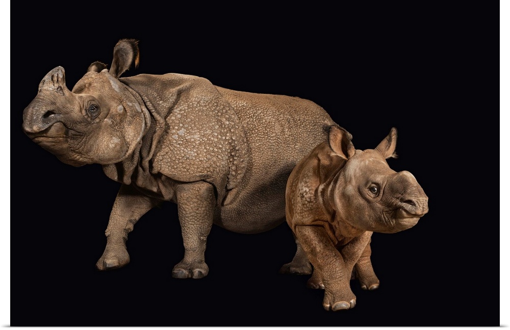 <p>An endangered Indian rhinoceros female with calf at the Fort Worth Zoo.</p>
