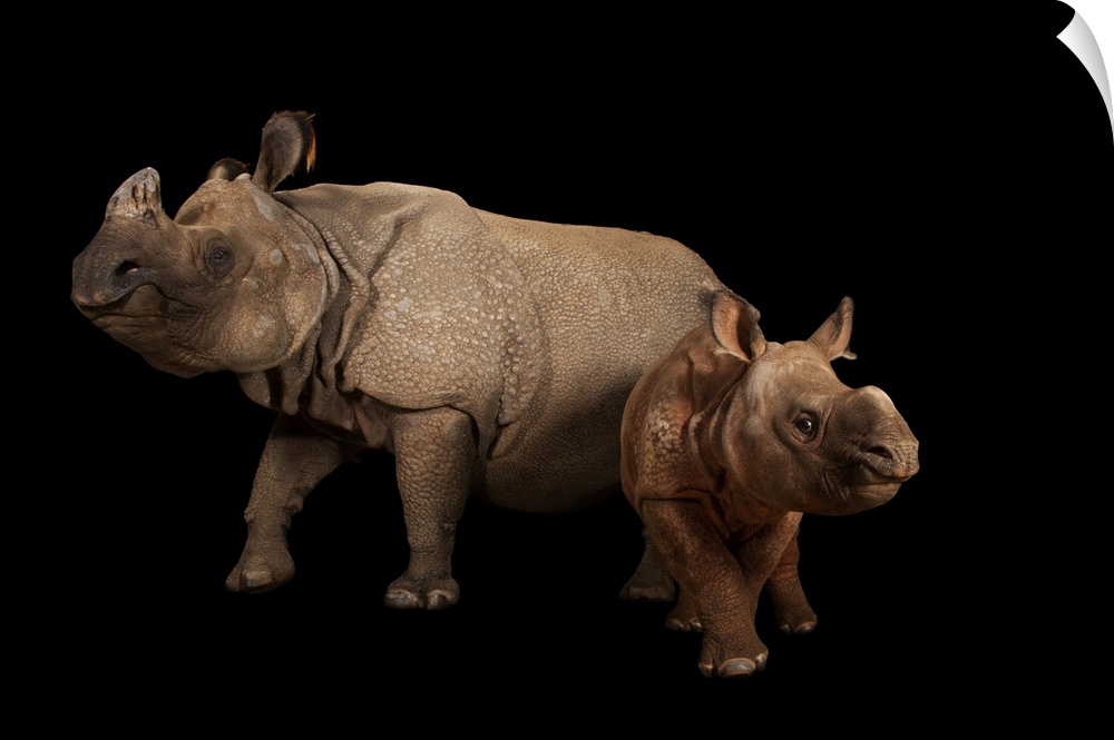 <p>An endangered Indian rhinoceros female with calf (Rhinoceros unicornis) at the Fort Worth Zoo.</p>