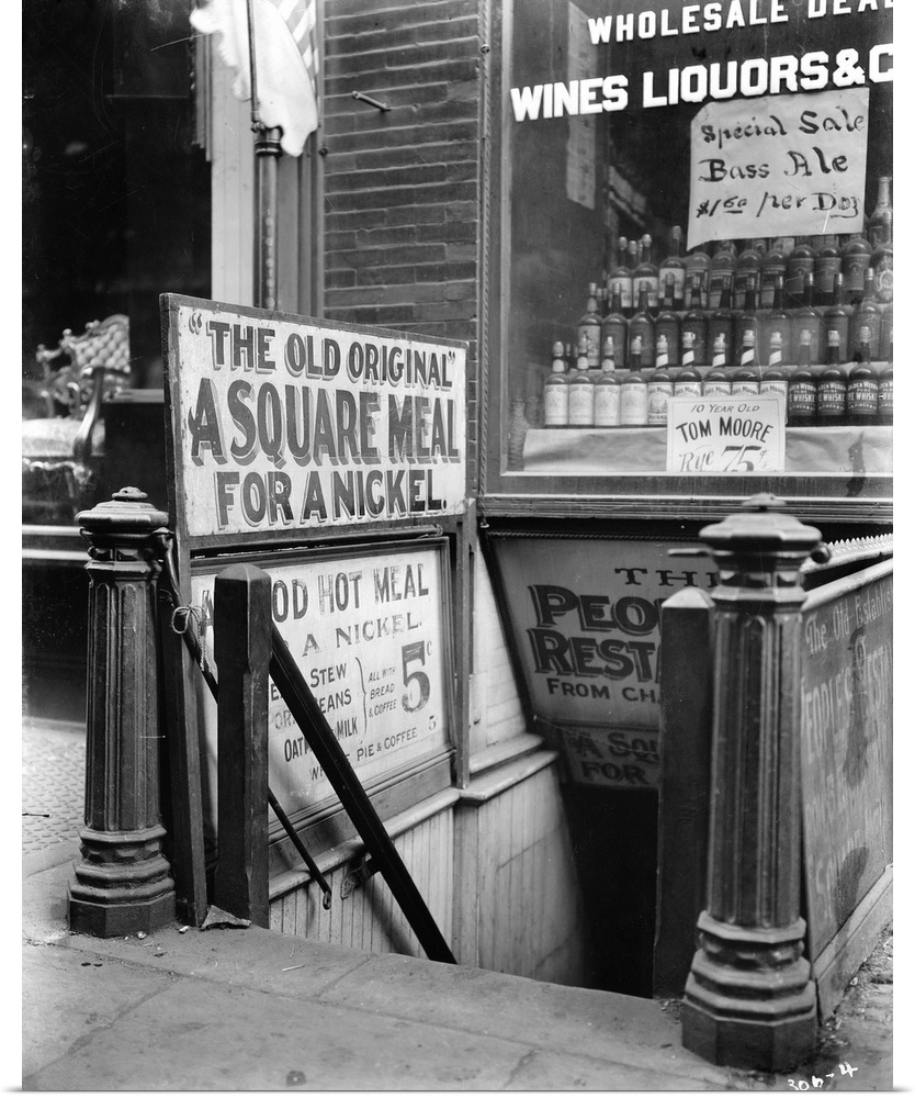 <p>An entrance to The People's Restaurant on The Bowery in New York City. Photograph, c1920.</p>