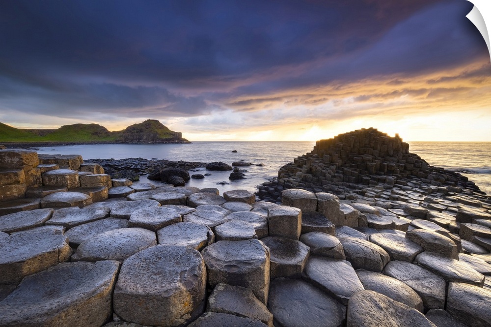 <p>An epic sunset at the Giant's Causeway with it's iconic basalt columns. County Antrim, Ulster region, Northern Ireland, United Kingdom.</p>