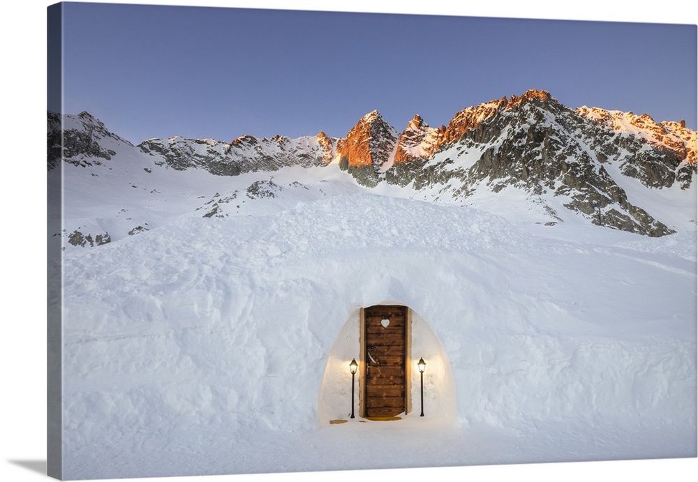 <p>An igloo room of Capanna Presena at sunrise, Trento, Val Presena, Trentino Alto Adige, Italy</p>