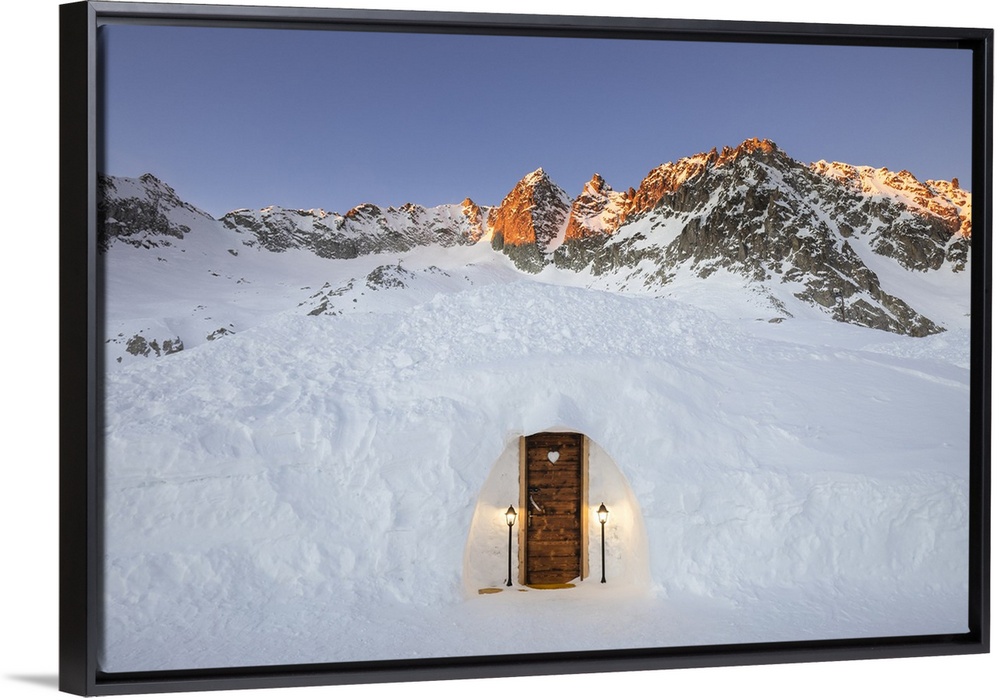 <p>An igloo room of Capanna Presena at sunrise, Trento, Val Presena, Trentino Alto Adige, Italy</p>