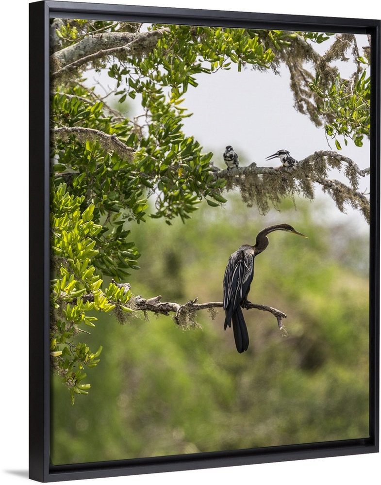 <p>An Indian Darter and two Pied Kingfishers in Yala National Park. This large park and the adjoining nature reserve of dry woodland is one of Sri Lanka's most popular wildlife destinations.</p>