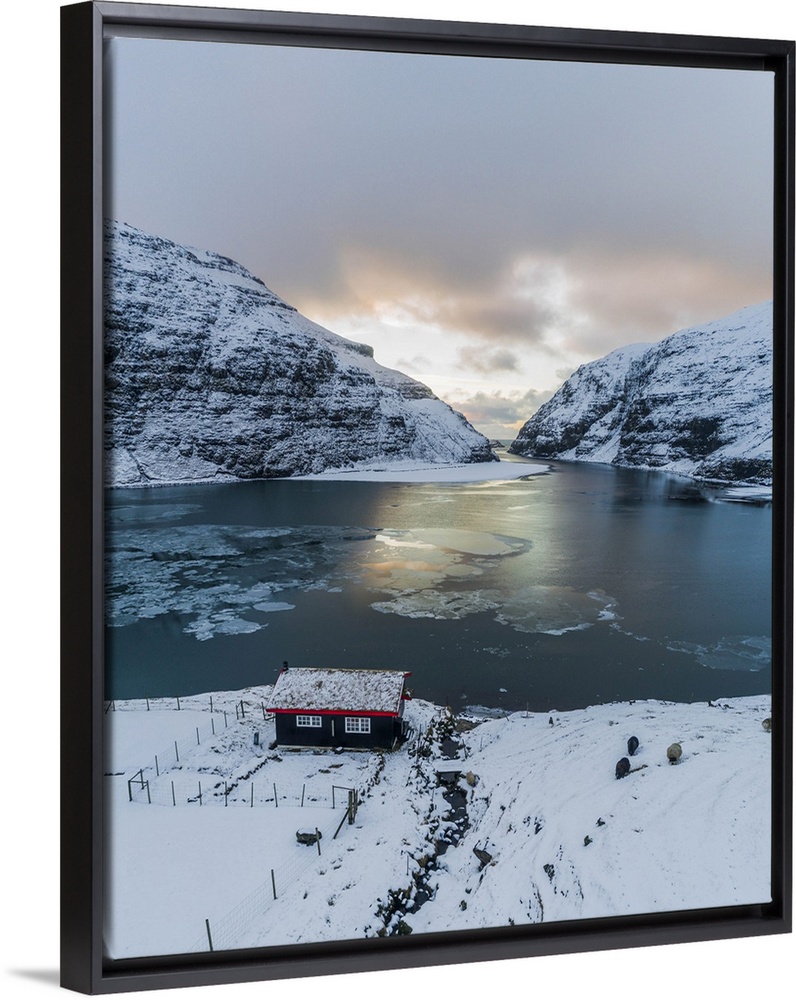 <p>An isolated cottage in front of the lagoon in Saksun, Streymoy, Faroe Islands</p>
