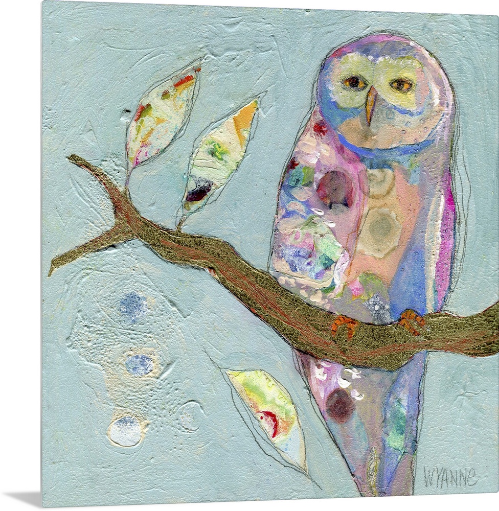 Art Wyanne Art Blue Wall Art Decorative Art Mixed Media Art Painting Watercolor Wildlife Bird Owl
