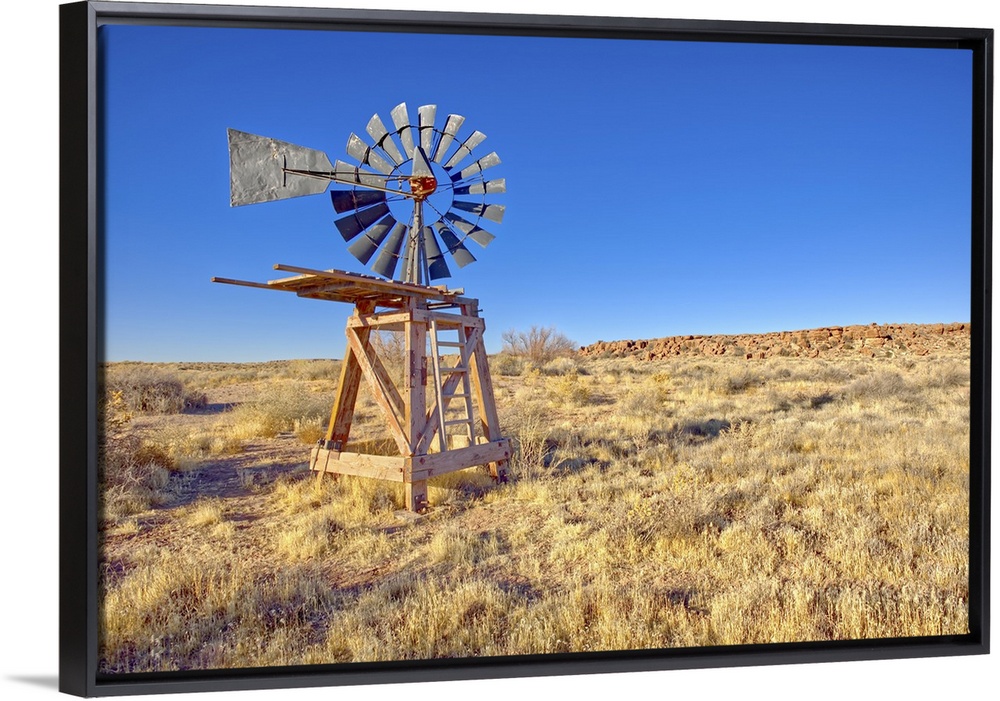 <p>An old windmill marking the boundary of the Devil's Playground in Petrified Forest National Park, Arizona, United States of America, North America</p>