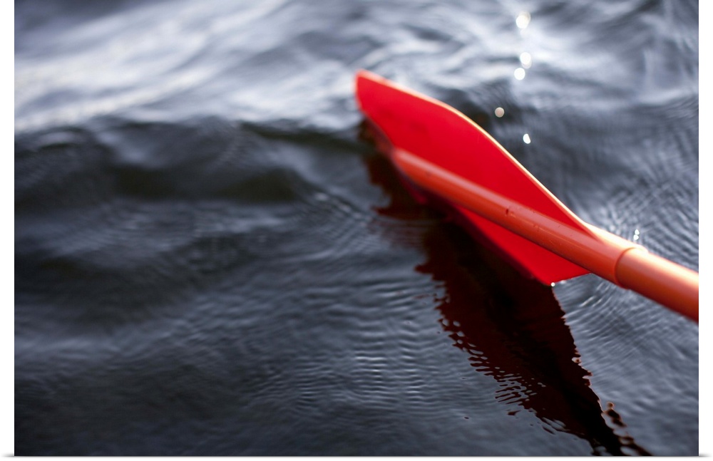 <p>An orange paddle dips into the calm waters of Acadia National Park near Bar Harbor, Maine.</p>