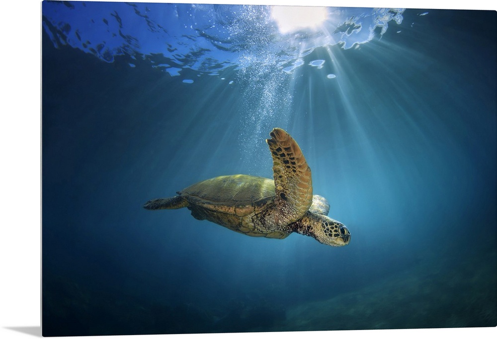 <p>An underwater view of a Hawaiian Green Sea Turtle (Chelonia mydas); Makena, Maui, Hawaii, United States of America.</p>