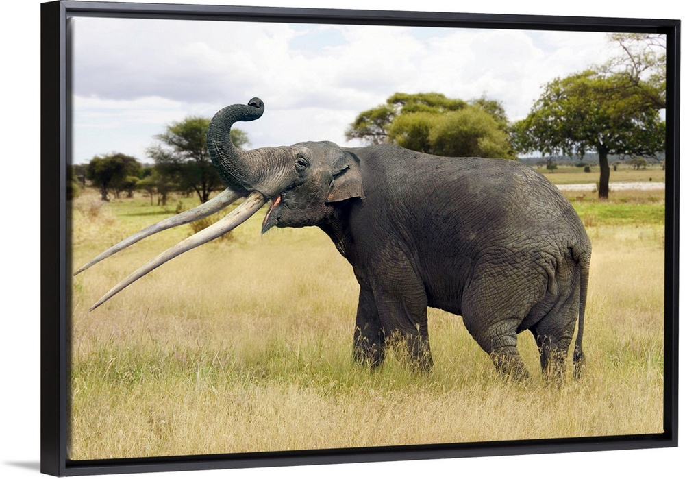 <p>Anancus arvernensis. Illustration and artwork of the ancient proboscis Anancus arvernensis trumpeting threateningly and pulling up his long-tusked head and trunk. Anancus is an extinct genus of gomphothere from Africa, Europe and Asia that lived during the late Miocene until its extinction during the early Pleistocene (3-1.5 Mya). Anancus stood around 3 metres tall, with a weight up to 6 tonnes, and closely resembled a modern elephant. It had two tusks, whereas most other gomphotheres had four. Aside from its somewhat shorter legs, Anancus was also different from modern elephants in that its tusks were much longer, up to 3 metres in length.</p>