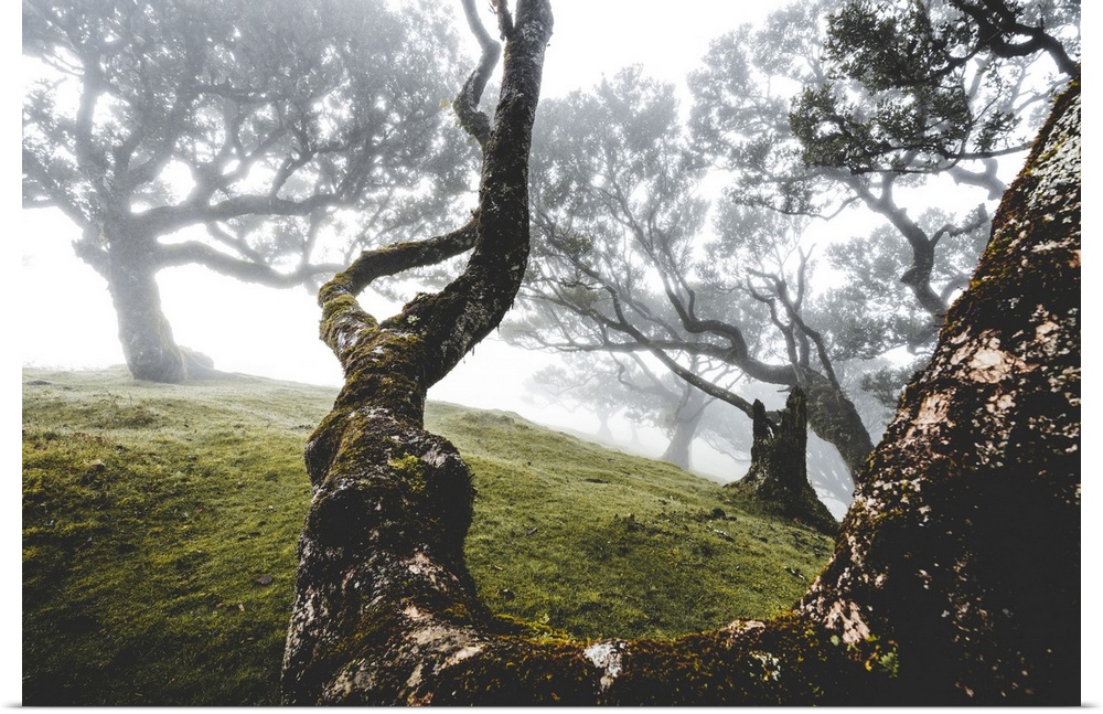 <p>Ancient laurel forest in the fog, Fanal, Madeira island, Portugal, Atlantic, Europe</p>