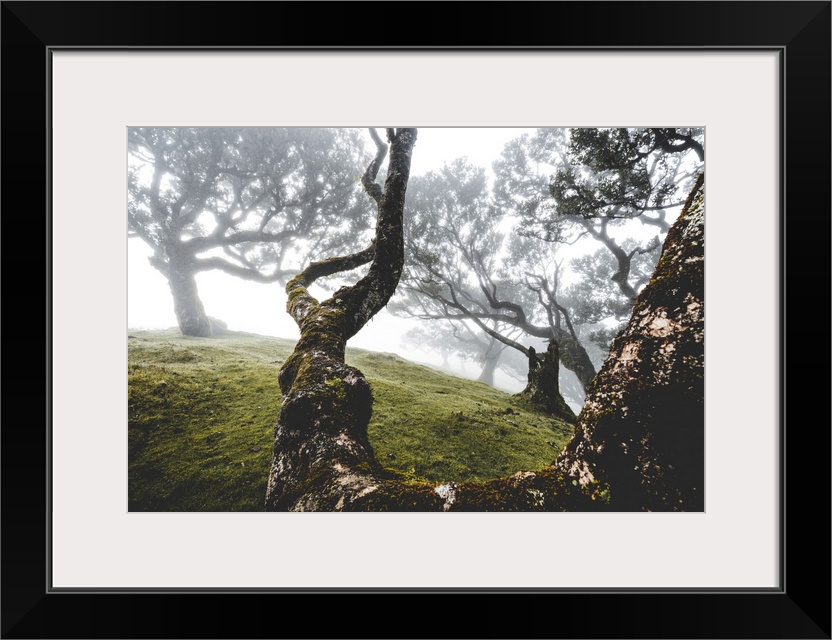 <p>Ancient laurel forest in the fog, Fanal, Madeira island, Portugal, Atlantic, Europe</p>