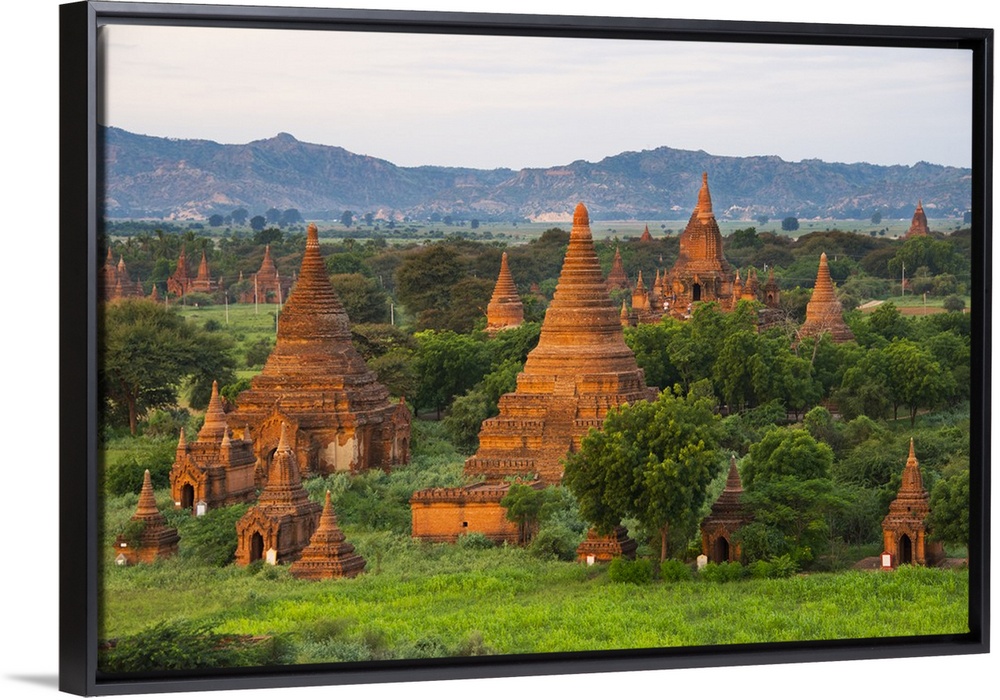 <p>Ancient temple and pagoda rising out of the jungle at sunrise, Bagan, Mandalay Region, Myanmar.</p>