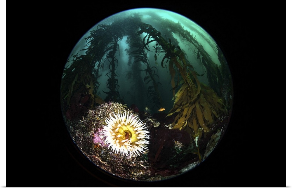<p>Anemone and kelp taken with a circular fisheye lens, Monterey, Central California.</p>