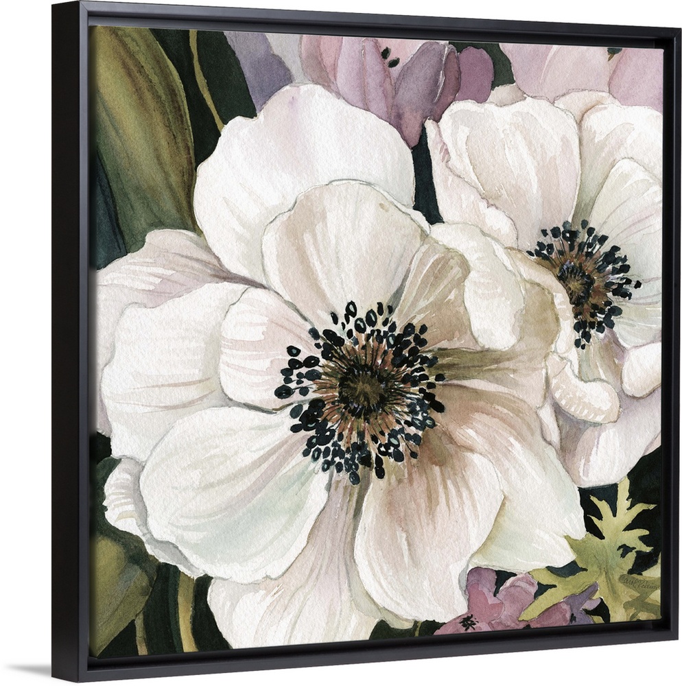 <p>A watercolor painting of white and pink anemone flowers.</p>