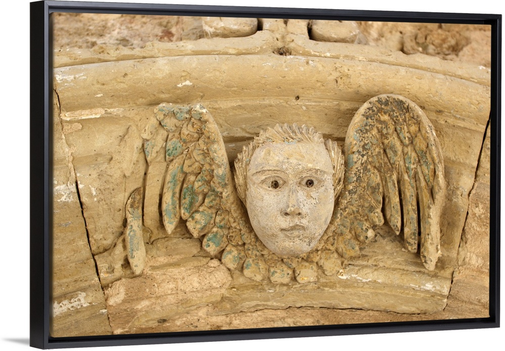 <p>Italy, Apulia, Otranto, angel carved in stone in a door archway</p>