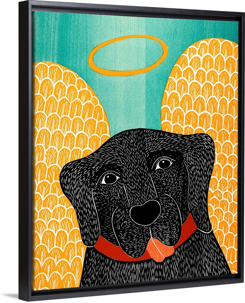 <p>Illustration of a black lab with angel wings and a halo.</p>