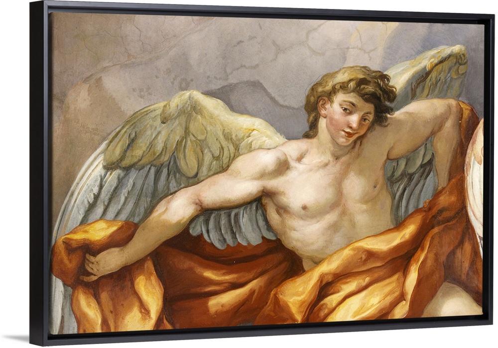 <p>Angel in dome fresco by Johann Michael Rottmayr, Karlskirche (St. Charles's Church), Vienna, Austria, Europe.</p>