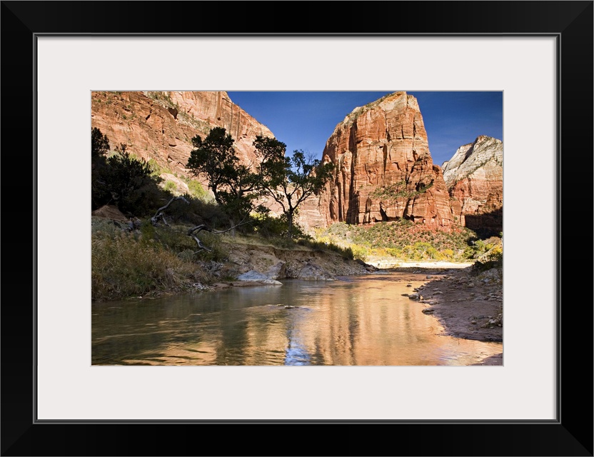 <p>Angels Landing reflected in the waters of the Virgin River, Zion National Park, Utah. USA</p>