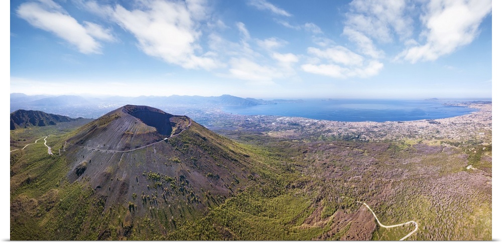 <p>Angled aerial view of Mount Vesuvius volcano, Naples, Campania, Italy, Europe</p>
