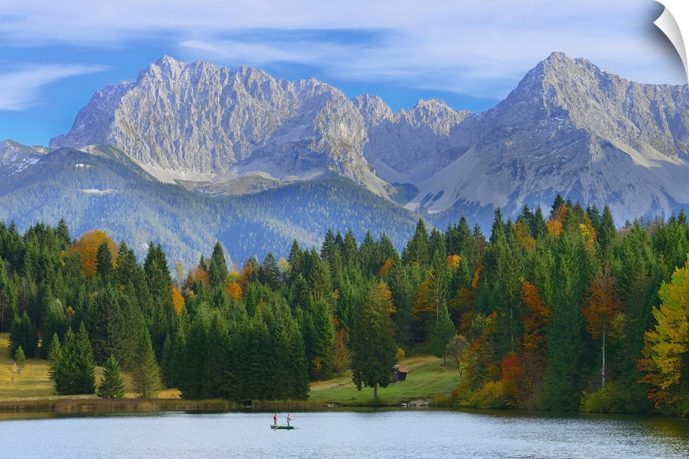 <p>Anglers, Lake Geroldsee with Karwendel Mountain Range, near Garmisch-Partenkirchen, Werdenfelser Land, Upper Bavaria, Germany</p>