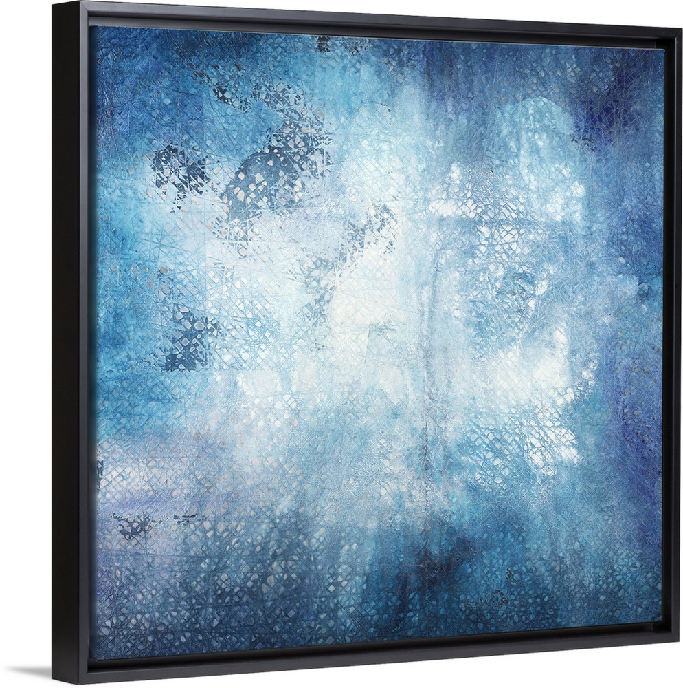 <p>Square abstract art in shades of blue with lined texture coming through.</p>