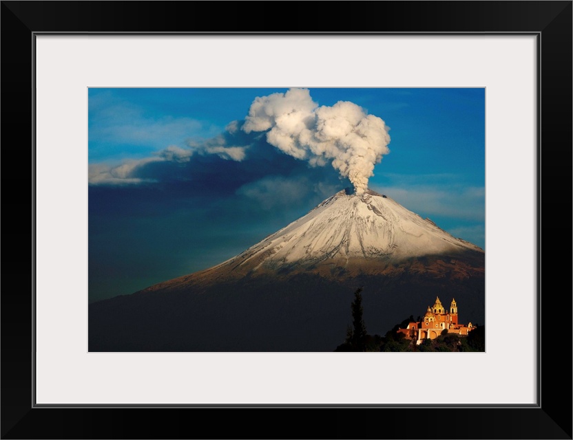 <p>Clouds of ash rising from snowy Popocatepetl volcano, Mexico.</p>