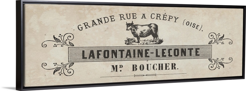 <p>Vintage label for a French butcher shop selling cuts of beef.</p>