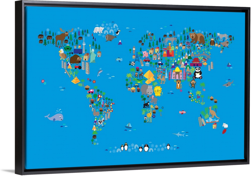 Animal Map of the World for children, Blue