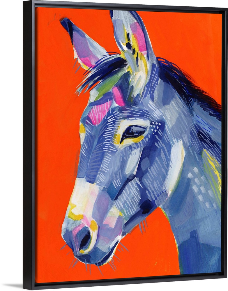 Art Blue Wall Art Contemporary Art Wildlife Orange Wall Art Painting Victoria Borges Wildlife Donkey