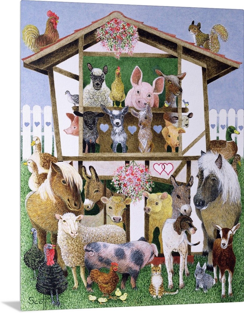 <p>Pat Scott's popular artwork showcases collections of animals, from horses to pigs to cats to zebras, in an inviting and classic style.</p>