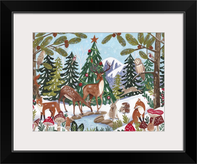 Art Caroline Bonne Muller Contemporary Art Winter Holidays Christmas Landscapes Snowscapes Trees Forest Painting Wildlife Deer