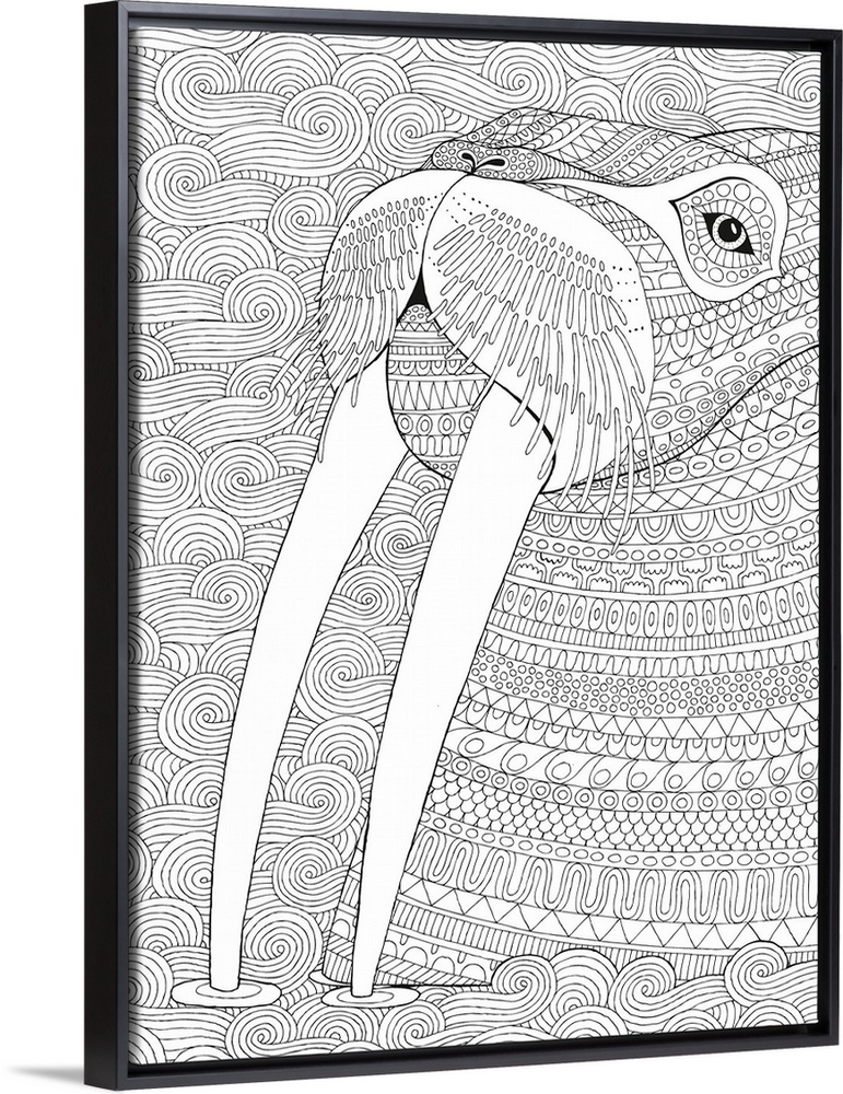 <p>Black and white line art of a walrus made up of unique lined patterns with a swirly background.</p>
