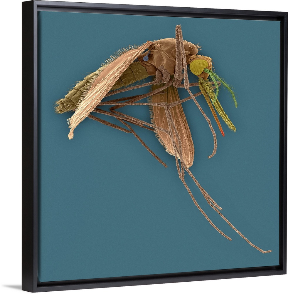 <p>Coloured scanning electron micrograph (SEM) of Anopheles stephensi, female mosquito vector carrier of malaria. Anopheles is a genus of mosquito from the family Culicidae. There are approximately 400 species of the Anopheles mosquito, 30 to 40 transmit four different species of the parasite, Plasmodium, that causes malaria. Anopheles stephensiis the main urban mosquito vector of malaria in the Indian subcontinent. Malaria is one of the most common infectious diseases and an enormous public-health problem. The most serious forms of the disease are caused by P. falciparum and P. vivax. The parasites, transmitted by the female mosquito when she sucks blood, multiply within red blood cells, causing symptoms that include symptoms of anaemia, as well as other general symptoms such as fever, chills, nausea, flu-like illness, coma and death. Magnification: x4. 5 when shortest axis printed at 25 millimetres.</p>