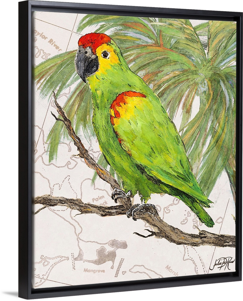 Art Decorative Art Julie DeRice Green Wall Art Painting Wildlife Bird Parrot Tropical Birds